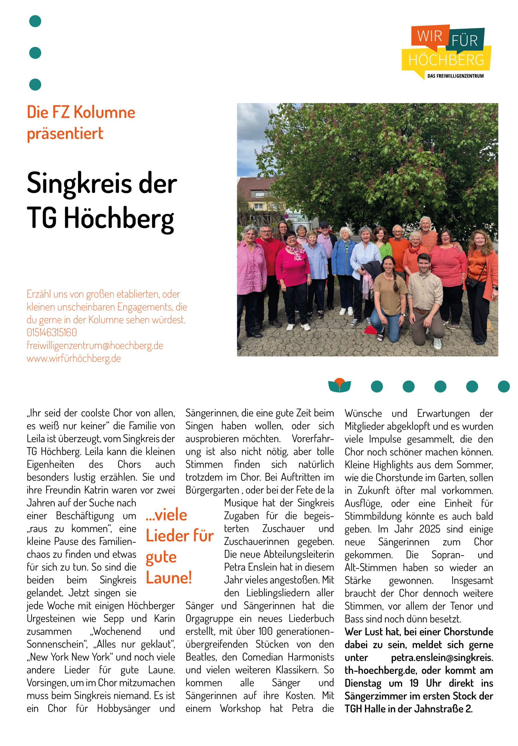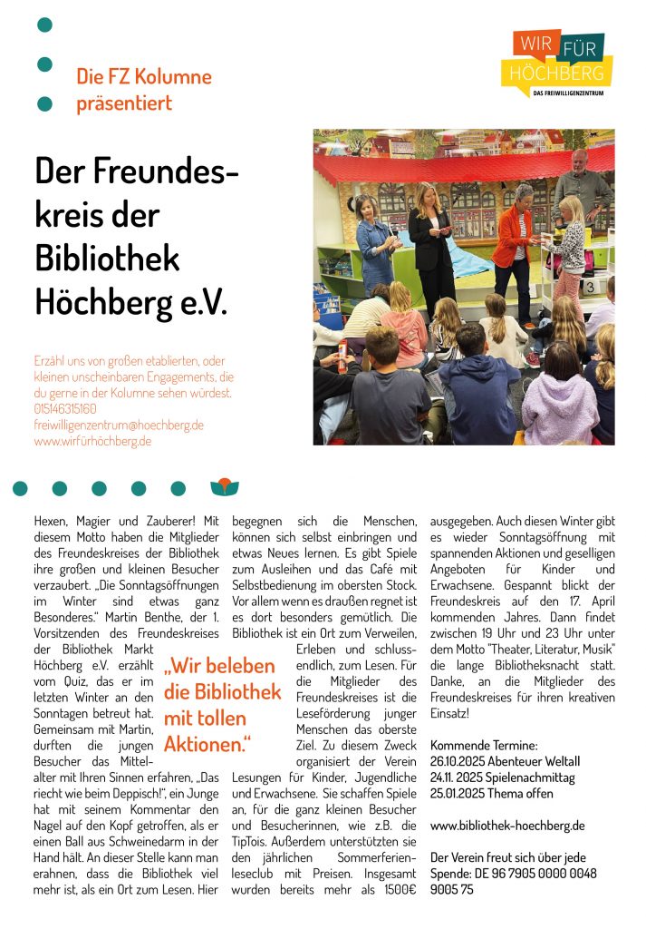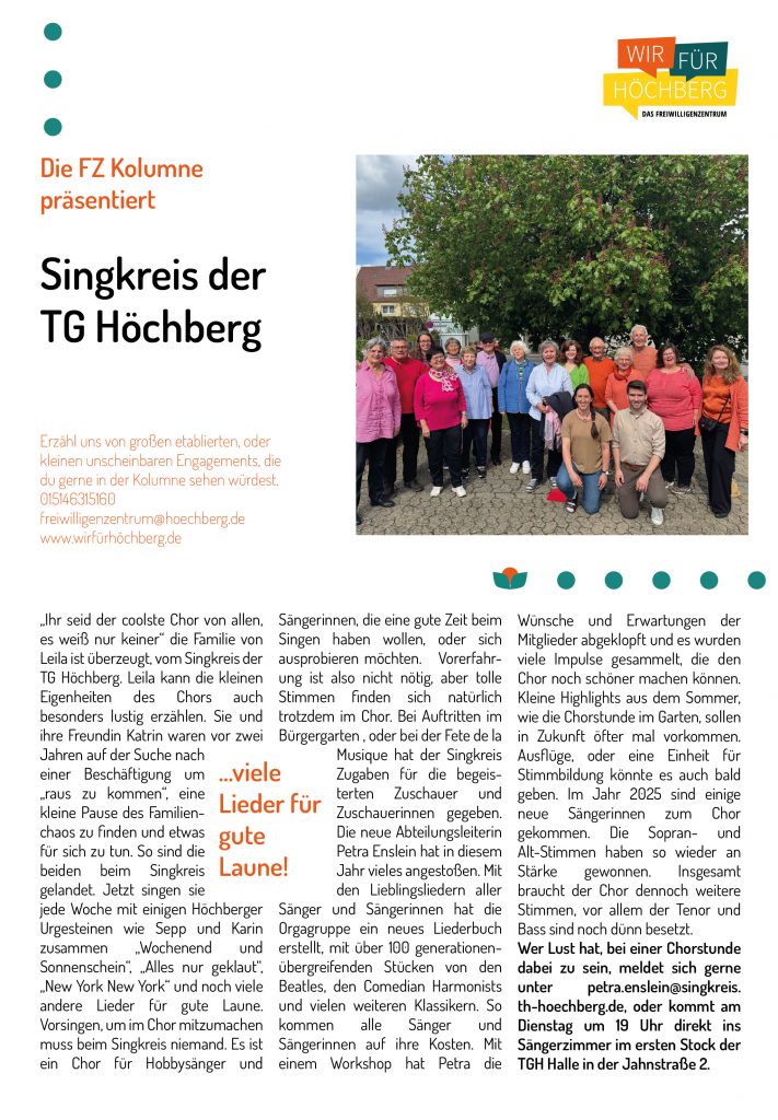In der Kolumne berichten wir monatlich von einem besonders schönem Engagement. Wer eine Idee hat, welches Engagement in der Kolumne erscheinen sollte, meldet sich gerne beim Freiwilligenzentrum Markt Höchberg.